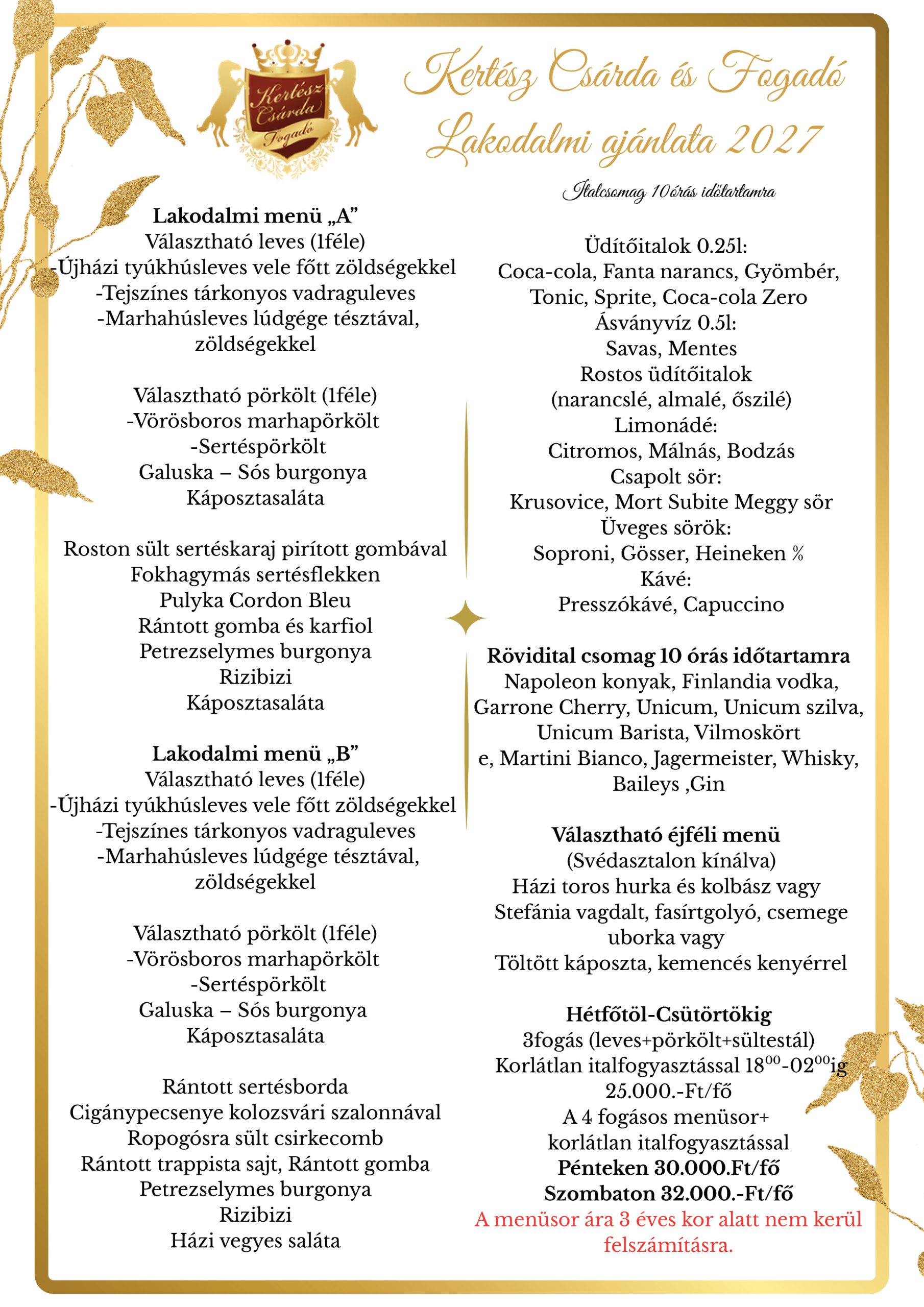 Vasárnaponként elérhető családi ajánlataink Telefonos rendelés A vasárnap a családról, a közös asztalról és az igazi, házias ízekről szól.Mi levesszük a főzés gondját a válladról, hogy csak az együtt töltött idő maradjon. Vasárnaponként elérhető családi ajánlataink bőséges csomagokban érkeznek, klasszikus csárdás fogásokkal – pont úgy, ahogy szeretjük. https://www.youtube.com/watch?v=d8oyZ_tL33E&t=5s Telefonos rendelés Választható családi csomagok Mindegyik csomag ára: 20.000 Ft I. Családi csomag – Rántott ...