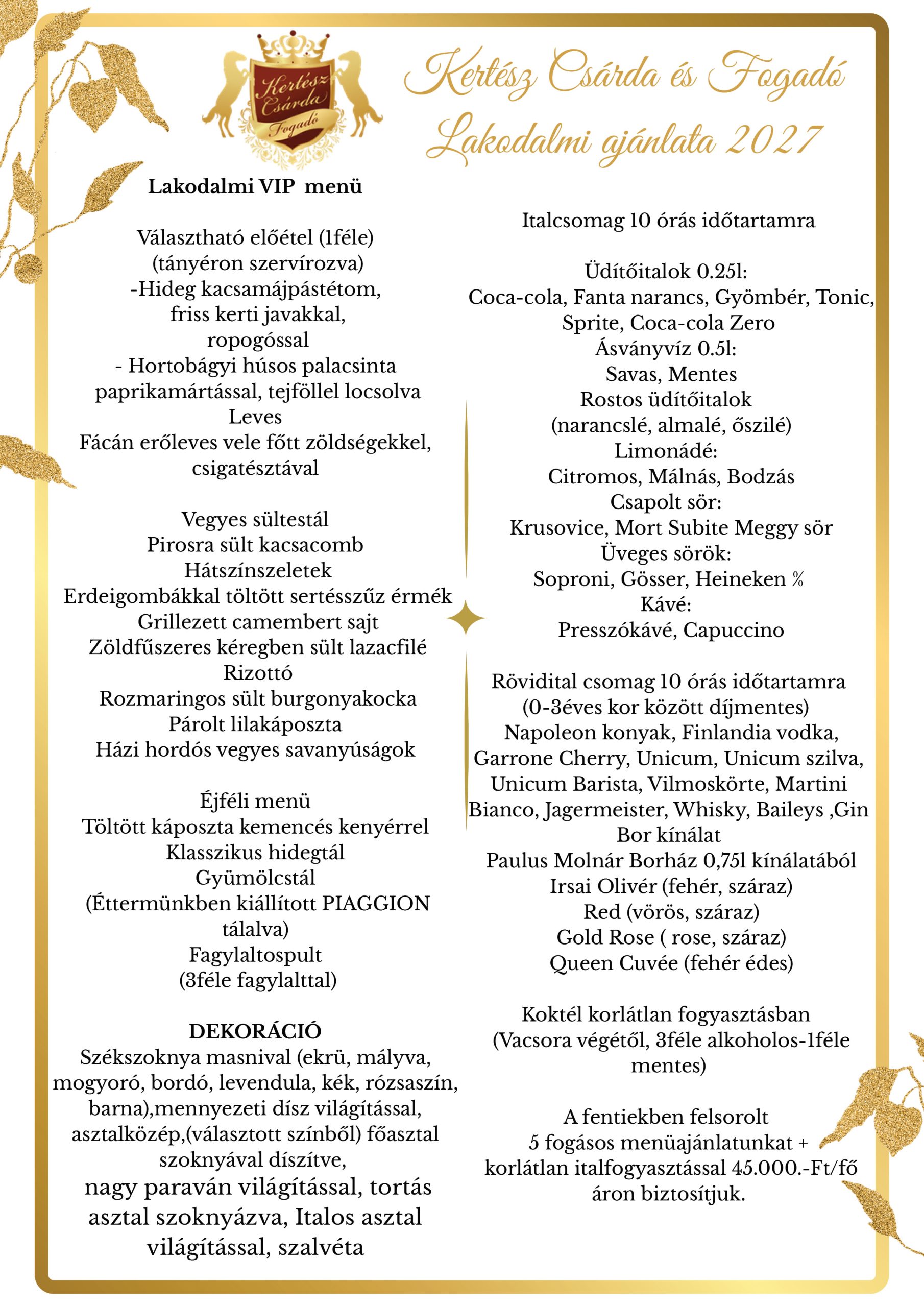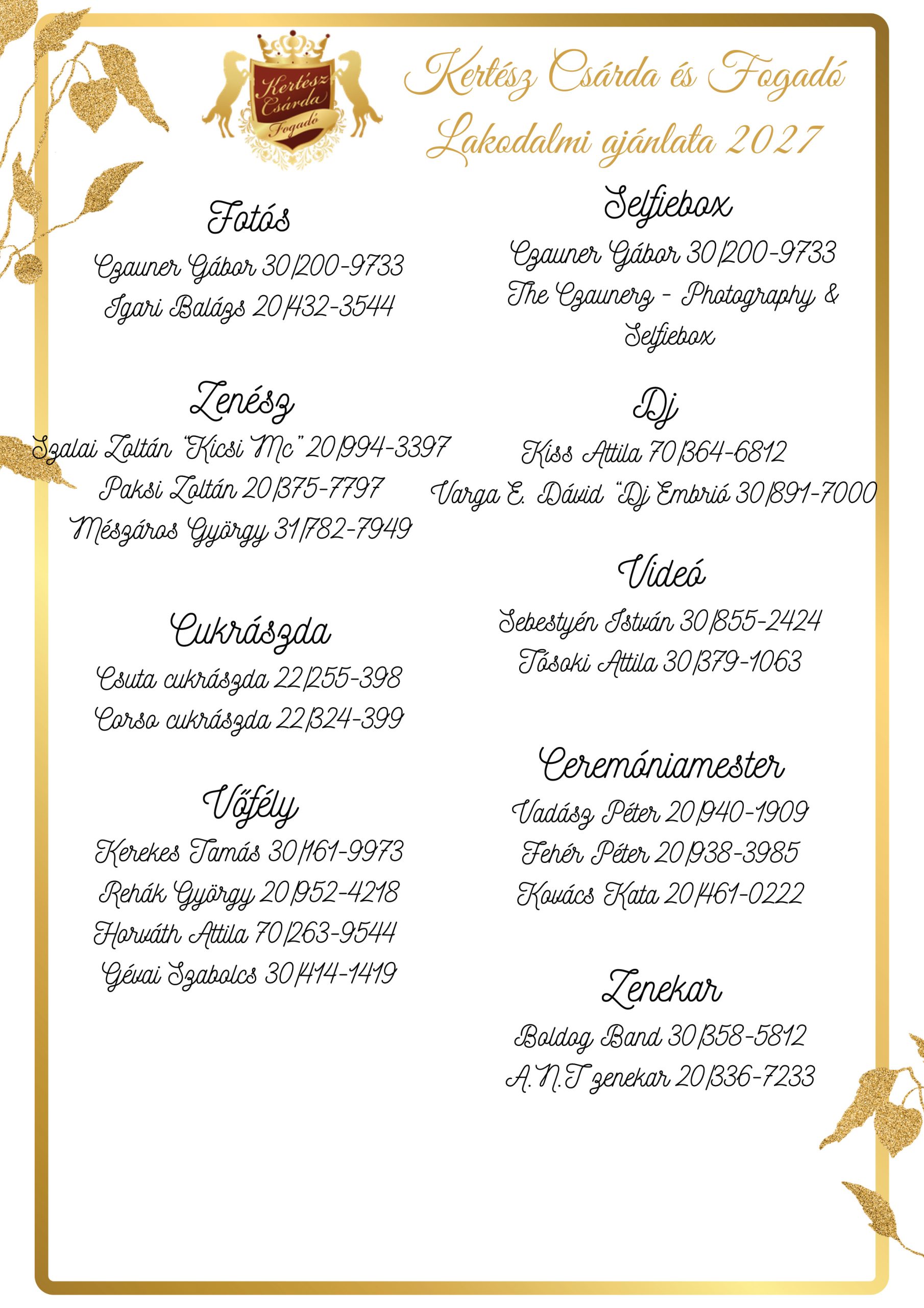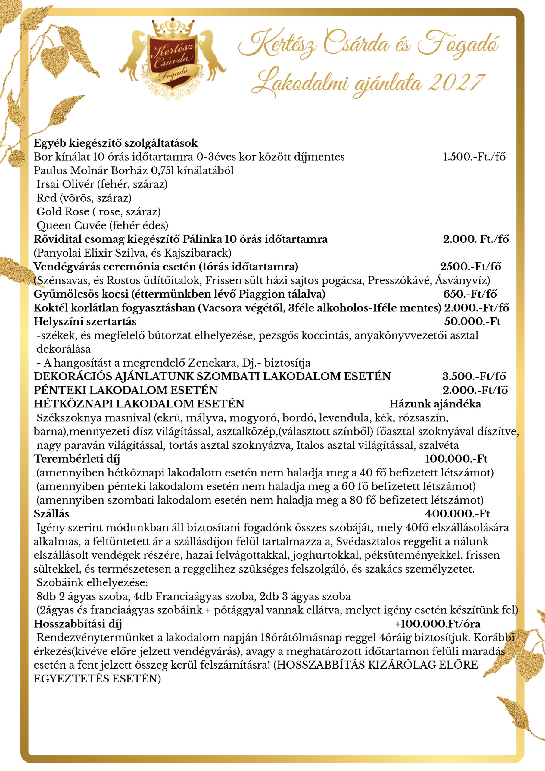 Legyen szó kis, családias lakodalomról vagy nagyobb, táncos mulatságról – nálunk minden a helyén van, hogy az ünnep valóban ünnep legyen.